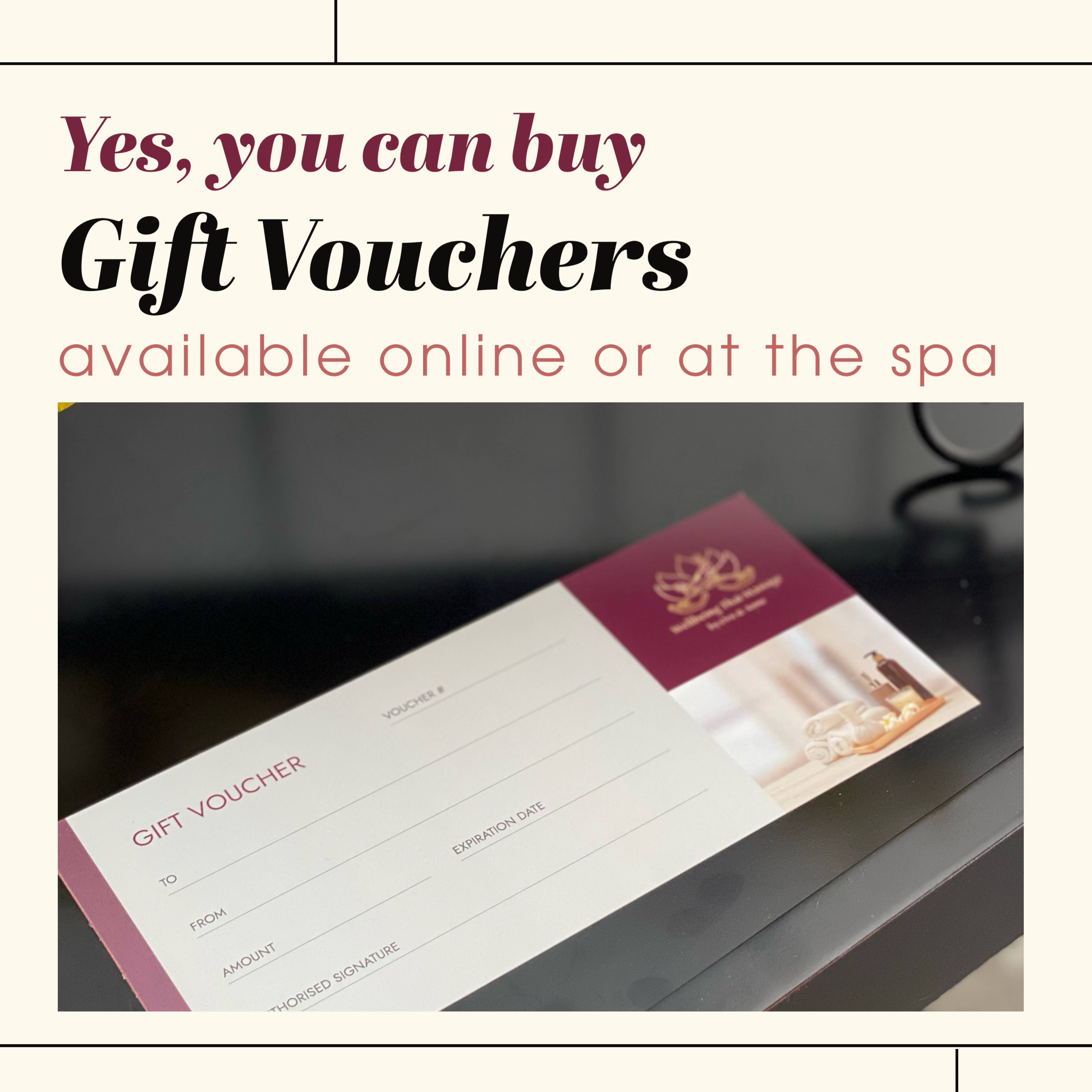 We now have gift vouchers available for purchase online. Choose from vouchers for our popular services or packages, or choose an amount yourself. Digital vouchers are delivered via email to you or your recipient. Printed vouchers on high quality card stock are also available for purchase onsite at the spa. View Gift voucher – terms and conditions.